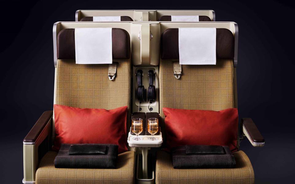 Nova sedišta su široka od 46 do 48 cm i mogu da se obore pod većim uglom, a imaju i produžetak za odmaranje nogu. Svaki putnik u premijum ekonomskoj klasi dobijaće sopstveni paket priručnog pribora za putovanja, vrhunske slušalice za smanjenje buke i korišćenje elektronskog sistema zabave tokom leta, koji će moći da prate preko monitora veličine 15,6 inča. Na svakom sedištu će biti instalirana lampa za čitanje i električni i USB priključak.